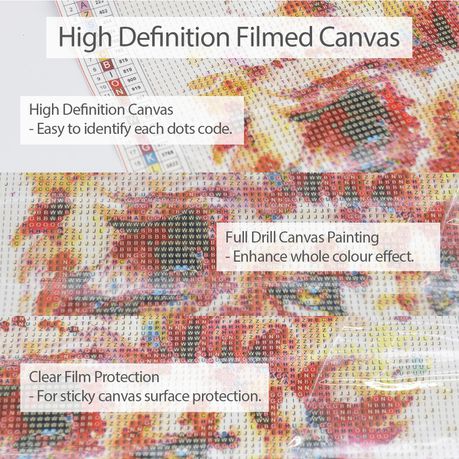 - Full drill on canvas - diamonds cover the entire canvas that enrich the colour effect on canvas.