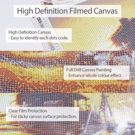 - Full drill on canvas - diamonds cover the entire canvas that enrich the colour effect on canvas.