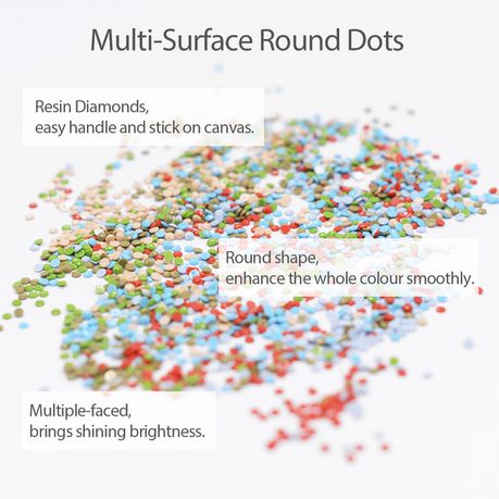 - Round resin diamonds - multiple faces on each diamond provides shining and brightness for the painting.