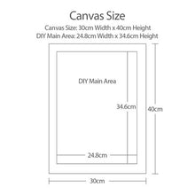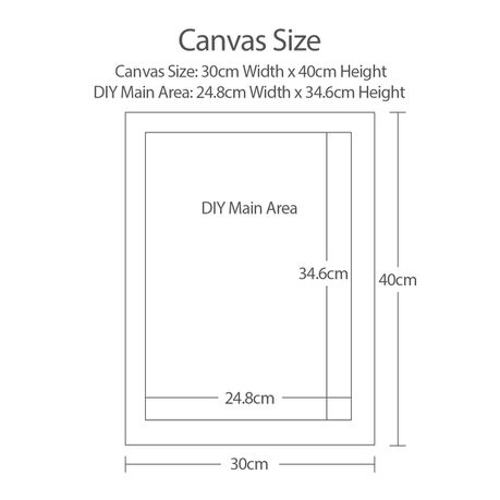 - Canvas Size: 30cm width x 40cm height. DIY painting area: 24.8cm width x 34.6cm height