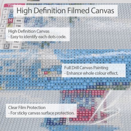- Full drill on canvas - diamonds cover the entire canvas that enrich the colour effect on canvas.