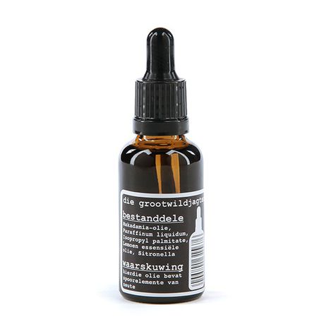 Die Grootwildjagter is ideal for hunting season. We add a generous amount of citronella, for the flies during the day and the mosquitoes at night, to keep them of the hunter's magnificent mane.