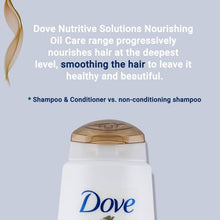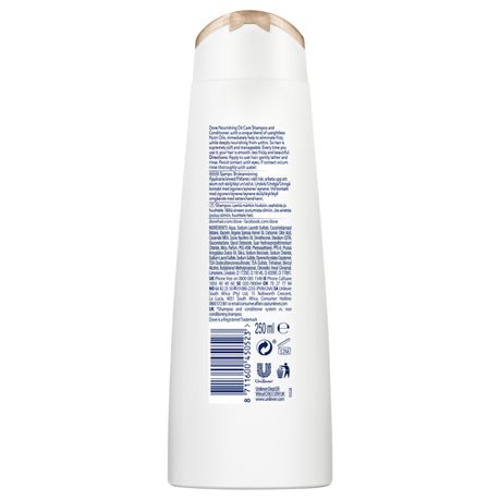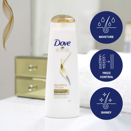 Enjoy silky hair with Dove Nutritive Solutions Nourishing Oil Shampoo. This Dove Shampoo immediately helps to eliminate frizz, while deeply nourishing from within.;Dove Nourishing Oil is a deep nourishing shampoo hair treatment for straight or curly hair.;Combat the drying effects of daily hair styling with nourishing nutri-oils.;A moisturising shampoo that leaves dry hair supremely smooth, soft and manageable.;Dove hair products are formulated to provide the best care for every type of hair.;Dove Nutritive Solutions hair products care for your hair and make hair styling easier.