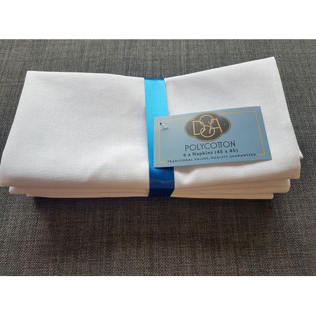 DSA - Polycotton Napkins - Set Of 6 - White Fine, high quality table linen. The perfect table accessory to add a touch of glamour to your dinner parties