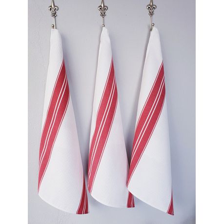 DSA Linen - Waffle Weave Tea Towels White And Red - Set Of 2