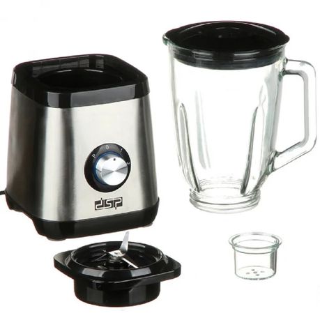 Dsp professional 2-in-1 mixer comes with a grinding mill and slicer as well as helping you prepare a variety of dishes quickly. it has a mixing bowl in which you can puree vegetables and make smoothies or shakes. a grinder comes in handy for crushing coffee beans, herbs and spices. you can also crush ice in it to add to your cold drinks. in addition, it has a thermostat for extra safety and speed with a turbo with 4 serrated stainless steel blades that cut evenly and perfectly. it has a great rubber base that sits well on the countertop for easy mixing. power consumption: 350w case material: safe glass bowl 1.5l juicer capacity