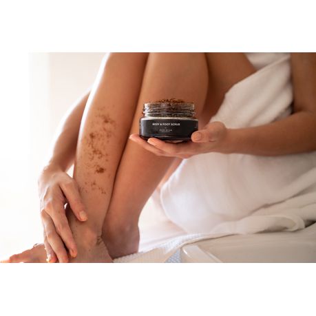 The Eco Diva Glow Up Body & Foot Scrub is an all over Glow-Getter. This luxurious and deeply moisturising dark sugar & oil-based scrub not only removes dead skin cells & invigorates circulation, it also boosts collagen production as well as offering deep hydration. Feel & look rejuvenated & revitalised every time you use it.
