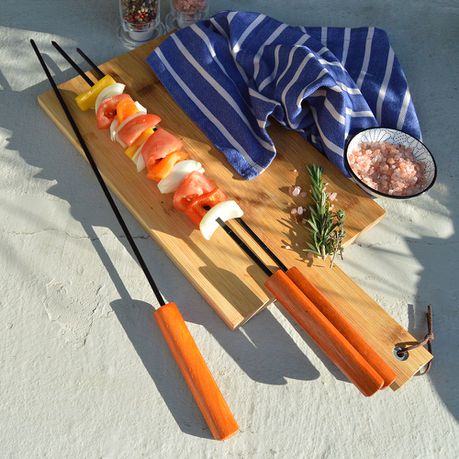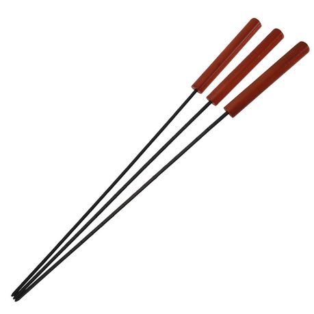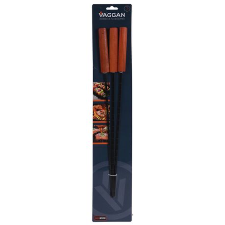 This grill skewer set is very handy and consists of a total of 3 barbecue skewers with a brown wooden grip, non-stick coating in black. It is ideal for making kabobs, good for Vegetables, beef cubes, chicken, and marshmallows.