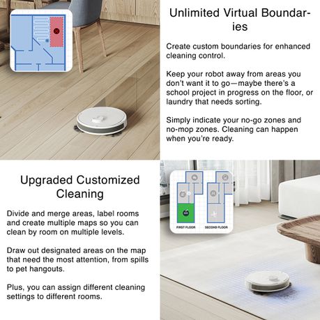 By using the ECOVACS Home App users can maintain privacy and satisfy cleaning needs by creating virtual boundaries to define restricted areas, restricting the Deebot from entering them.