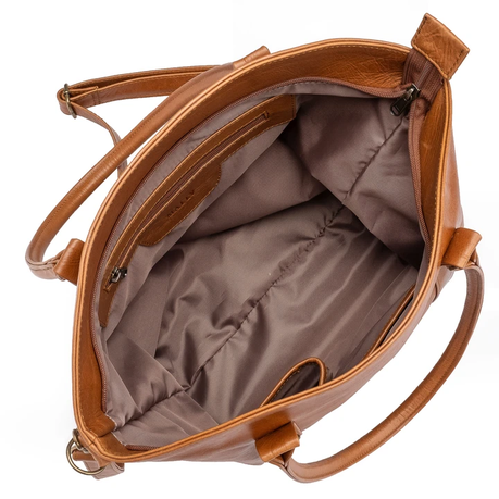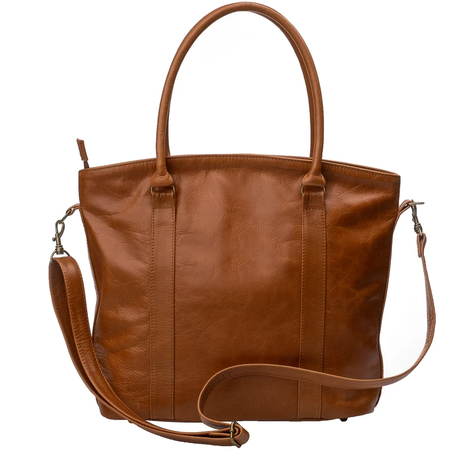 Features: - Adjustable shoulder strap - Zipped bag closure - Cell phone and money pocket - Zipped inner pocket - Double carry handles - Flat bottom with metal feet underneath for protection - Hand crafted in South Africa - Finest hand selected distressed bovine leather - Fits any tablet - H 34cm x W 40cm x 11cm base