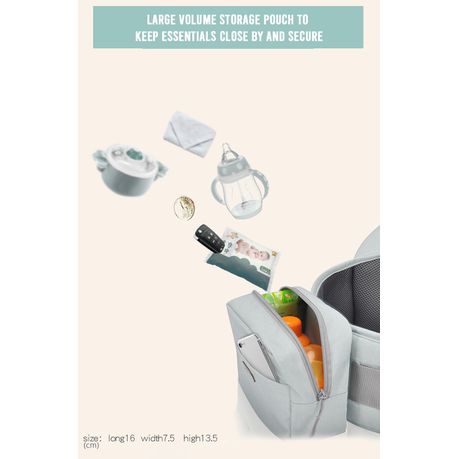 This carrier comes with a large storage pouch on the side that can be removed for convenience. (16 x 7.5 x 13.5 cm) Big enough to fit all your necessities.