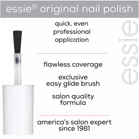 America's Nail Salon Expert: Essie is the go-to nail brand for salon professionals, beauty junkies, industry insiders, celebrities and fashion icons around the world. Even, Professional Application: Our exclusive easy glide brush fits every nail size for quick, even, professional application on nails.