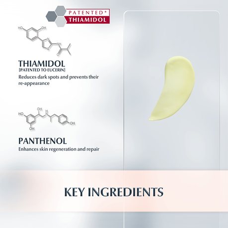 Eucerin Even Pigment Perfector Night Cream contains Thiamidol, an effective and patented ingredient that acts at the root cause of dark spots by reducing melanin production. It is clinically and dermatologically proven to reduce dark marks and prevent their re-appearance. First results are visible after two weeks and improve continuously with regular use. Tested on South African skin.