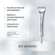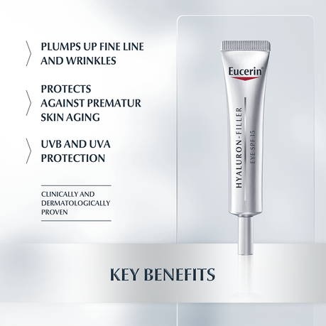 - You want to protect your eyes against further wrinkles: Eucerin Hyaluron-Filler Eye Cream contains SPF 15 with a UVA filter system to protect from premature ageing and the deepening of wrinkles.