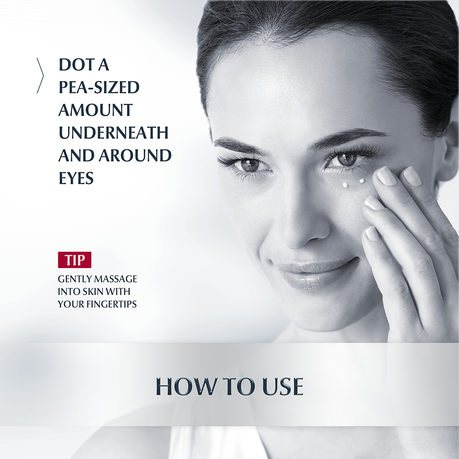 - Apply around the eye area by carefully and gently massaging with the fingertips.