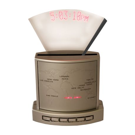 The programmable message clock that displays time, date and messages that float in space.