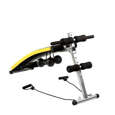 The Everlast Sit Up Bench is an all-in-one offering with 2 x 1.5KG Dumbbells and 2 x Toning Tubes included. Strengthen and develop the core muscles while performing upper body movements such as push ups, bicep curls and tricep extensions. Designed with a heavy-duty frame and high-density padding, the Everlast Sit Up Bench provides cushioned support to allow exercises to be performed effectively and comfortably. With a total maximum weight (user and weights included) of 100KGS, the Everlast Flat Bench is the perfect addition to any home gym.