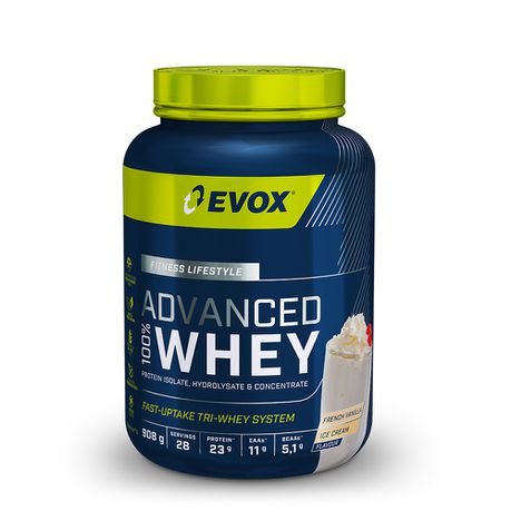 Our superior EVOX 100% WHEY PROTEIN ADVANCED has been scientifically developed to guarantee a highly bioavailable, rapidly absorbed whey protein matrix which supports muscle tissue recovery and lean mass gains. Your protein requirements will vary based on your age, gender and physical goal. Adjust your intake requirements accordingly. As a dietary supplement, add 1 slightly rounded scoop (32g) to 150-200ml cold water and blend.