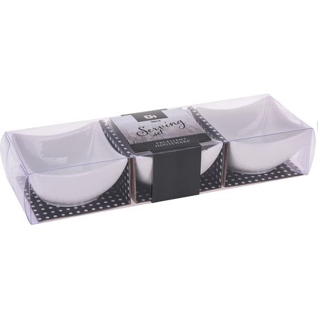 Snack Bowl Porcelain, Set Of 3Pcs In Pv Box With Colour Label. 4 Assorted Designs. Sizes: 90X90X50Mm, 90X90X40Mm, 95X95X43Mm And 95X95X35Mm. Total Box Size 310X102 Mm.Ass:4 Designs(Design 1..4)/ Acetate Box/ Label: 1 X Design 1, Porcelain, 90X90X50Mm,1 X Design 2, 90X90X40Mm,1 X Design 3, 95X95X43Mm,1 X Design 4, 95X95X35Mm