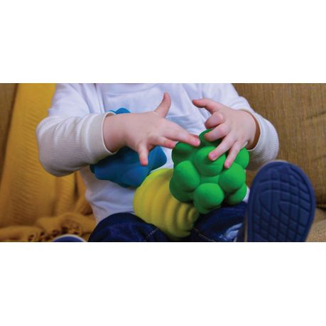 Fun, brightly coloured, Funky shaped Rubber Balls, designed for stimulating and imaginative play. Soft, velvety and squishy these natural rubber toys are safe from birth. Recommended by Occupational Therapists as they offer Tactile Stimulation and Hand-Eye Coordination play. Appropriate and safe for children with many types of special needs. Made from 100% natural foam rubber, this toy uses sustainable and eco-friendly materials. Hand Washable. Rubbabu toys are safety rated all over the world but are not a teether toy.