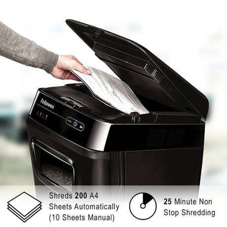 - 200 sheet automatic and 10 sheet manual shredding capacities