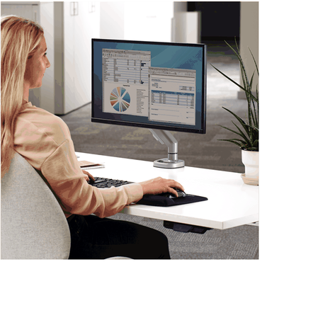 Achieve the perfect position and comfort with 26cm of height adjustability and 53cm of reach. Holds monitors up to 8kgs.