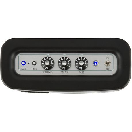 30 watts of power sent to 2 full-range drivers and a tweeter yields superior audio playback. Retro amp-style metal grille and volume, bass, and treble controls deliver that vintage vibe, minimum 33 ft. of wireless transceiving you're free to roam. Rechargeable lithium-ion battery can run for up to 12 hours. Built-in mic with echo cancellation for making and receiving phone calls 3.5mm auxiliary input for wired operation, USB port for charging smartphones or tablets.