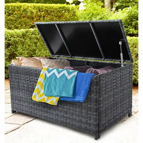 Neatly store away all your outdoor accessories from inflatables, armbands, braai tools or even towels in the Fine Living Rattan Storage Container. It’s a great addition to the patio, balcony or garden can be cleaned easily, simply by wiping it down. It is advised that to ensure longevity, that the storage box is placed undercover, as rain and damp areas can cause increased wear. The set is easily assebled and all screws are included.