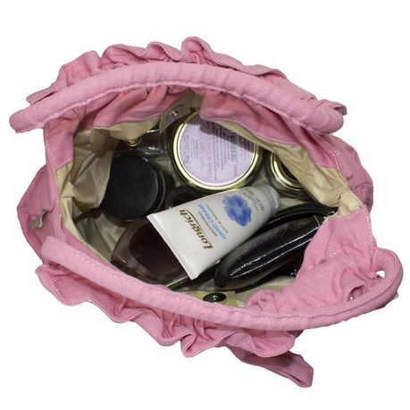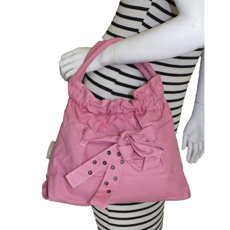 A gorgeous Canvas denim shoulder bag, is carried by 2 top handles, one main compartment leading to zipper pocket and slip pockets.