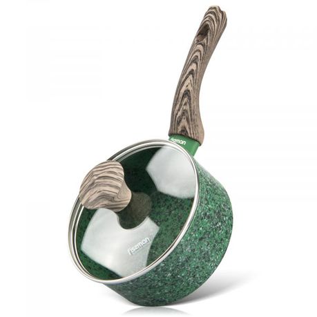The cookware series MALACHITE, with the unique coating EcoStone, was developed by FISSMAN and with its deep green finish with white and black speckles, offers highly durable abrasion and corrosion resistance.