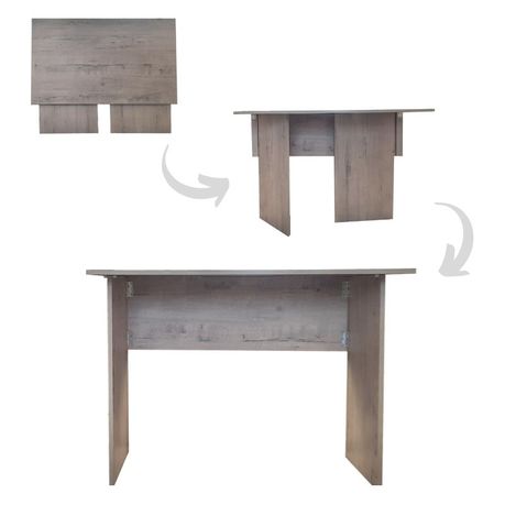 This clever space-saving, portable desk table offers ample workspace for your computer, monitors, and paperwork.