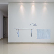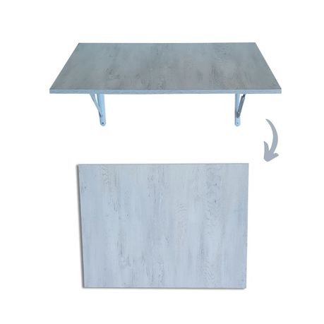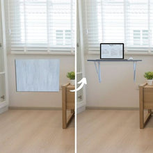 This fold-up, fold-down desk or table will fit into just about any room. The desk area is big enough for a computer and monitor. After work, it simply folds down and blends into the wall and enjoy room to move.