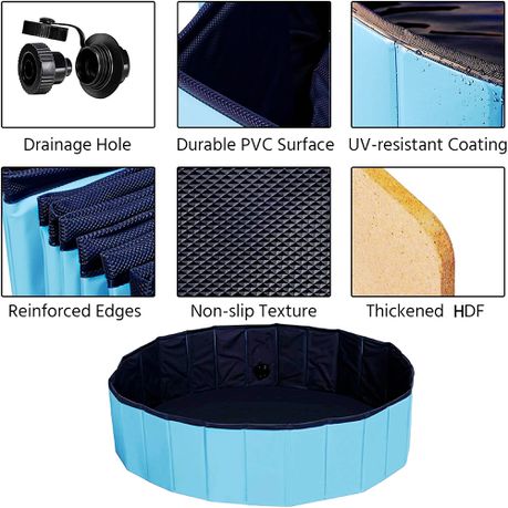 The sturdy plastic dog pool can be quickly assembled without an air pump and is easy to clean.