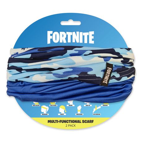 1st scarf: Blue camo all-over pattern featuring Fortnite Loot Llamas