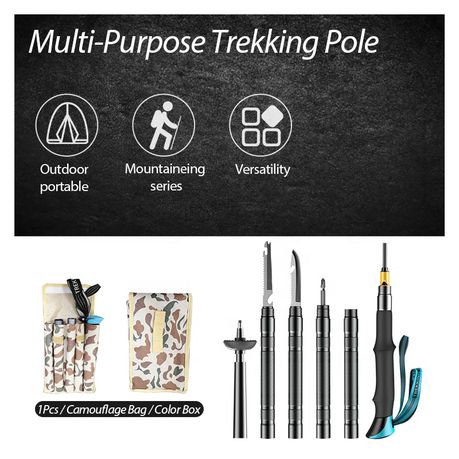 Introducing this collapsible multi-functional tactical trekking pole, your perfect outdoor survival essentials. It is made from high-strength aluminium alloy, which makes it ultralight and exceptionally strong. Its rotary locking mechanism allows for easy height adjustment and its aluminium alloy tungsten steel tip with trekking tray allows for more stability.