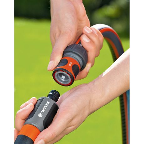 Ergonomic design with textured soft grip components Leak-free when connected to GARDENA system products