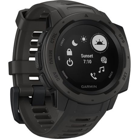 Stay on track with the Instinct Outdoor GPS Watch from Garmin. The Instinct features a built-in 3-axis compass, barometric altimeter, and access to GPS, GLONASS, and Galileo. Using multiple global positioning systems can help provide you with higher accuracy than GPS alone. When you're out on your adventures, you can rely on the Instinct's rugged construction, which supports the 0U.S. 810G military standard for thermal, shock, and water resistance. In fact, the Instinct is water-resistant up to 100m.