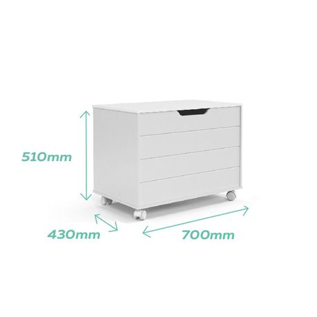 The George & Mason Baby toy trunk on wheels is a modern storage piece for your baby's nursery! It has 4 wheels for easy transport and a hydraulic arm to hold the top open when needed