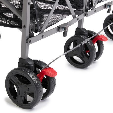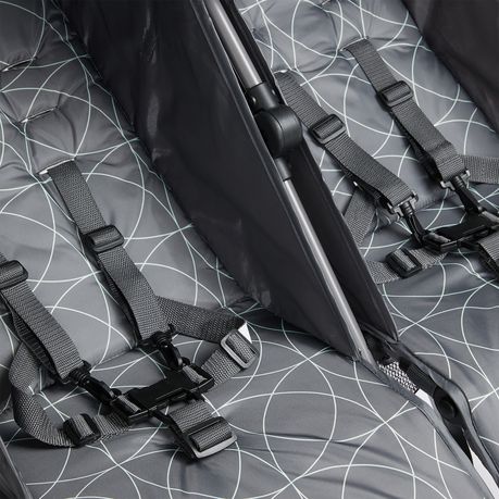 The George & Mason twin stroller is the perfect travelling accessory for a family. Taking your children where they need to be in comfort with individual space with a visor to protect them from the harsh elements.