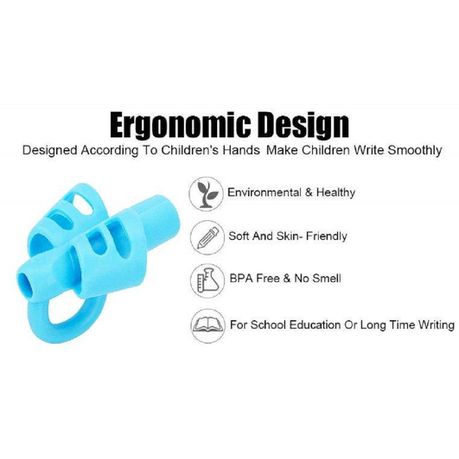 Help your kid get writing right from the start with these soft, stretchable, and comfortable pen/pencil grips. They help children (and adults) get used to holding pens and pencils in the right way when writing. This may improve writing speed as well as writing readability and also supports the health of the wrist and fingers.