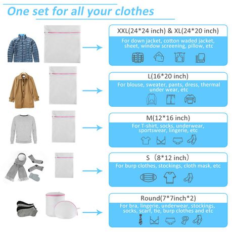 7 different sizes of Washing Bags fit all your washing needs. Durable and breathable polyester fibre material which is both healthy and clean. These Washing Bags perform perfectly every time protecting your delicates and keeping them like new.