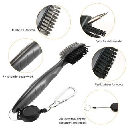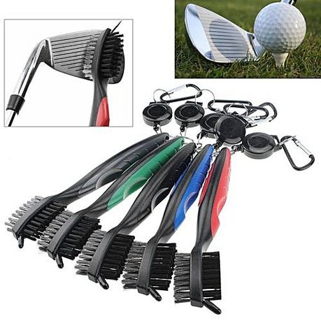 Double-side cleaning brush Keep Clubs Clean During Round. Attaches to Golf Bag with keychain.