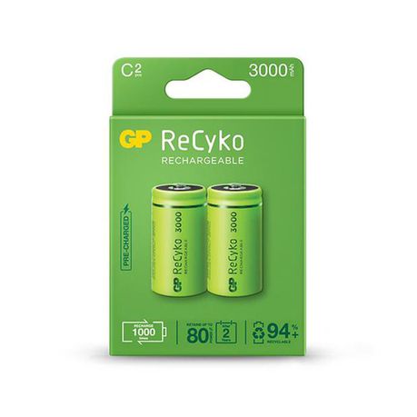1 X GP Batteries Recyko 1.2V C 3000mAh NiMH Rechargeable Batteries Card of 2
