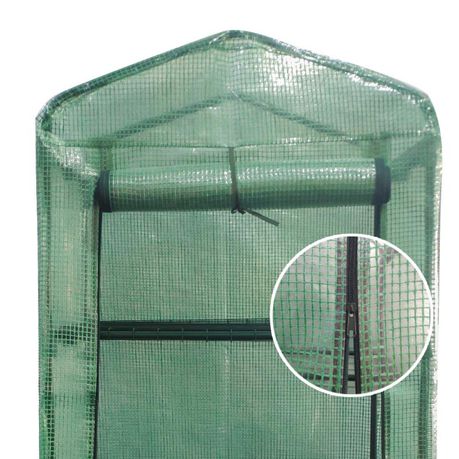 Place on a deck, patio, or balcony Gives seeds, seedlings, and young plants an early start Clear polyethylene cover and roll-up zippered door for easy access Strong push fit tubular steel frame Assembles in minutes without any tools