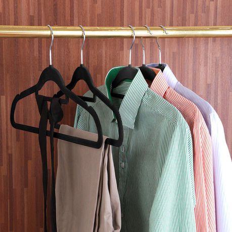 Non-slip: high-quality hangers with a velvet-coated surface, which increases the friction force between clothes hanger and clothing. This prevents slipping