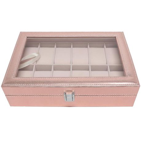 - Material: PU leather surface, fibreboard frame, velvet lining, scratch-resistant perspex