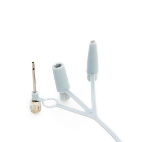 A lightweight, manually operated hand pump, with three nozzle adaptors, used to inflate air mattresses, balls, tyres and toys.
