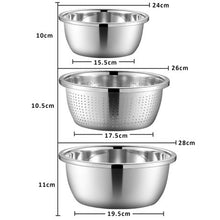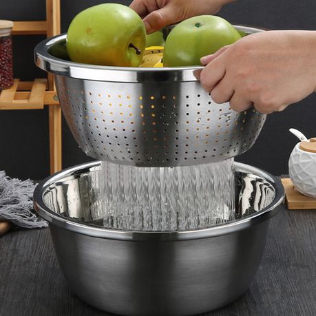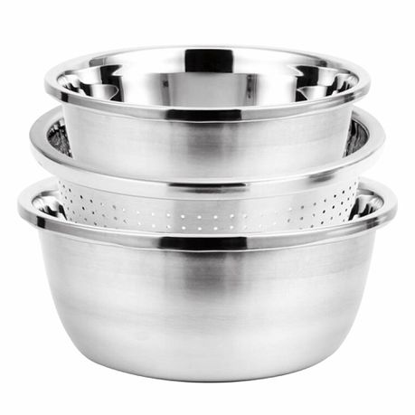 This product includes only a three-piece stainless steel strainer and mixing bowl set, excludes any other item.
