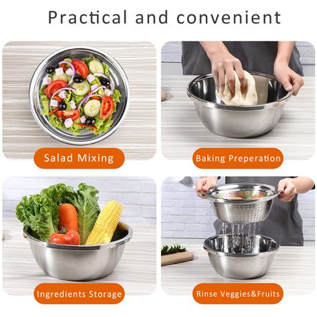 Save space by storing foods in the refrigerator and freezer. Ideal for cooking prep, the bowls are essential to any baking project.