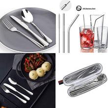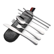 7 piece Travel Silverware set with case- includes dinner knife, dinner fork, dinner spoon,